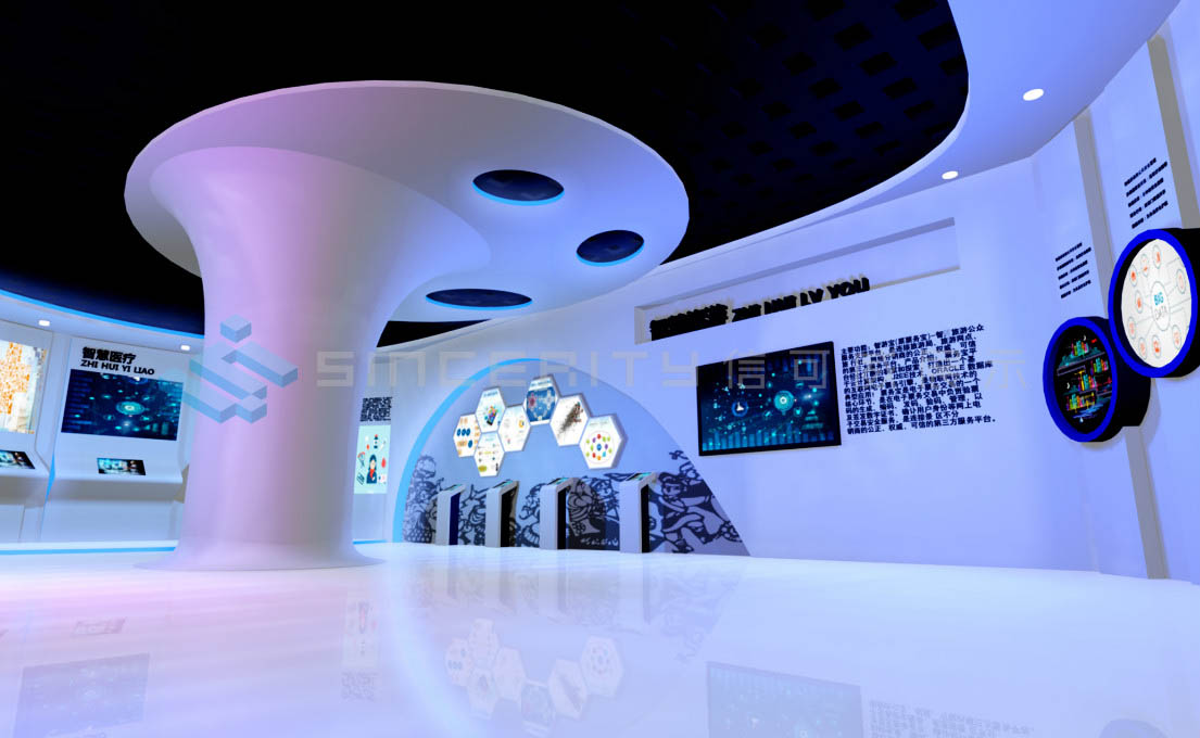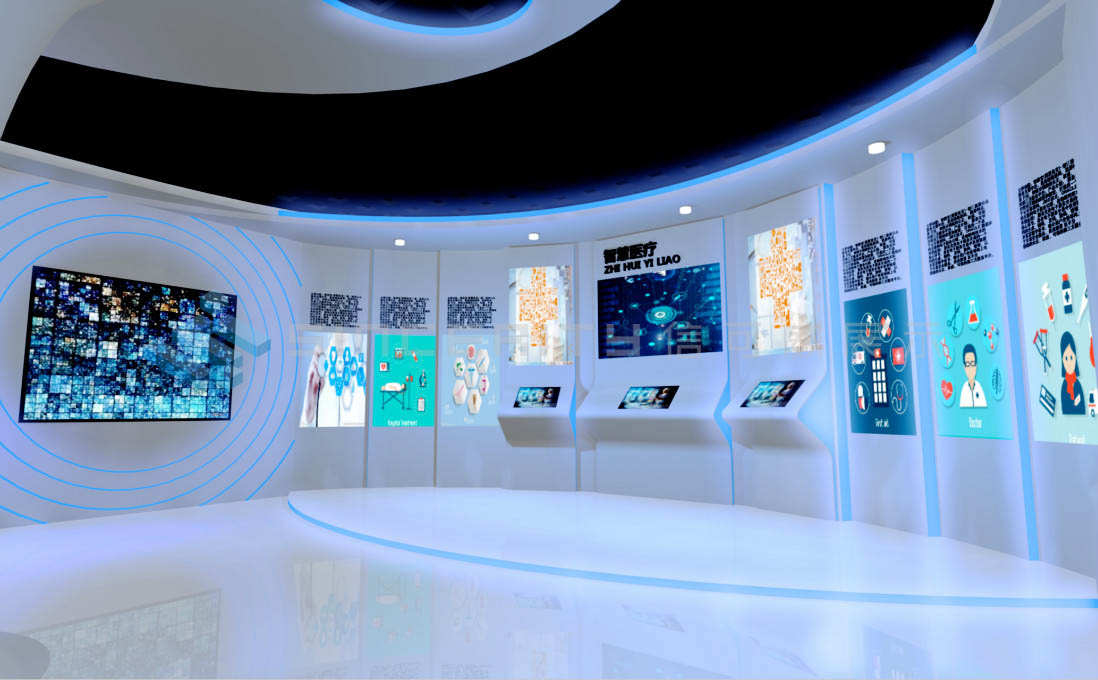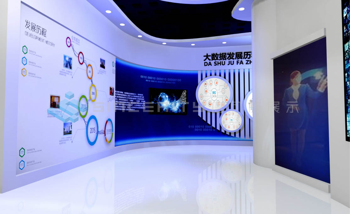 展示方式利用了目前國(guó)內(nèi)先進(jìn)的科技手段,如VR中島技術(shù):通過服務(wù)器搭載環(huán)境,利用激光和光敏傳感器來實(shí)現(xiàn)可創(chuàng)建和虛擬的世界;全息投影技術(shù):利用干涉和衍射原理記錄并再現(xiàn)物體真實(shí)的三維圖像等等。
