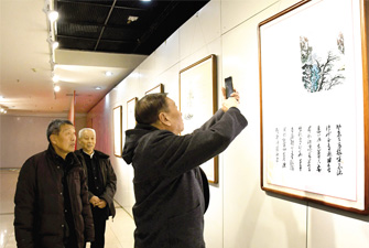 12月26日,國學文化教育展在市展覽館開展,共展出唐詩、宋詞、元曲中的經典作品100首。作品融合了中國古代繪畫藝術、書法藝術,并配以精彩賞析短文,完美展示了“唐宋元一脈相承,詩書畫三絕合璧”的藝術。展覽由市文旅局主辦,2020年1月5日截止。圖為觀展市民正在用手機拍攝自己喜歡的作品。