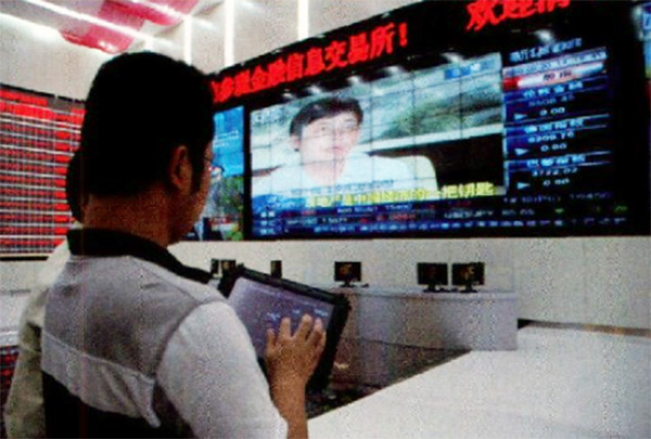 智能中控-參觀中記者發(fā)現(xiàn)陪同的技術(shù)人員手上拿著一塊平板電腦,這就是為什么我們走到那里都有特殊待遇 的原因了。交易所采用的MIP智能管理控制系統(tǒng),專門用于多媒體控制的新型技術(shù)。MIP可以將原來對各類視頻源、音頻源、視音頻終端播放設(shè)備、各類信號間的切換和一些強(qiáng)電設(shè)備的分散控制和操作全部集中在一起,經(jīng)過軟件編程,就可以在同一個(gè)觸摸屏上實(shí)現(xiàn)對所有設(shè)備的分別控制和程序化控制。